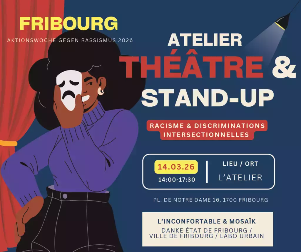 Nehmen Sie anlässlich der Woche gegen Rassismus 2026 an einem Workshop teil, um über konkrete Maßnahmen gegen Rassismus und Sexismus nachzudenken und diese zu finden. Im Anschluss daran gibt es ein Stand-up-Comedy von Kaziwa Raim-Rotzetter!