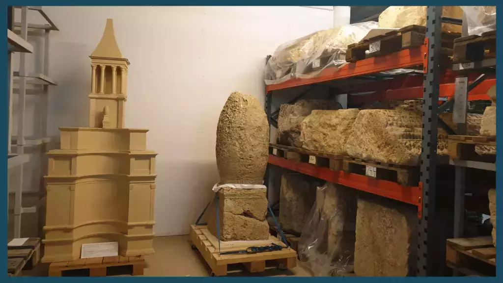 Dort werden Mosaike, Gemälde, Inschriften, Architekturblöcke, Gegenstände aller Art (Glas, Metall, Knochen, Keramik usw.) aufbewahrt und von Archäologen untersucht.