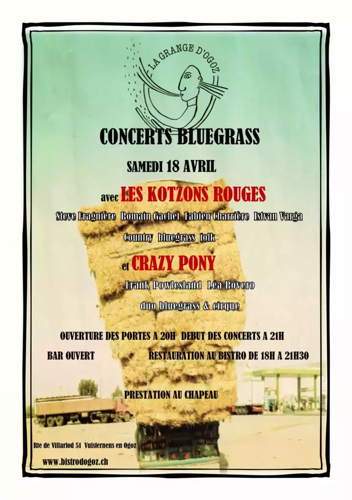 Concert de "Les Kotzons Rouges": Romain Gachet, Steve Fragnière, Fabien Charrière, Istvan Varga, Country, bluegrass, folk