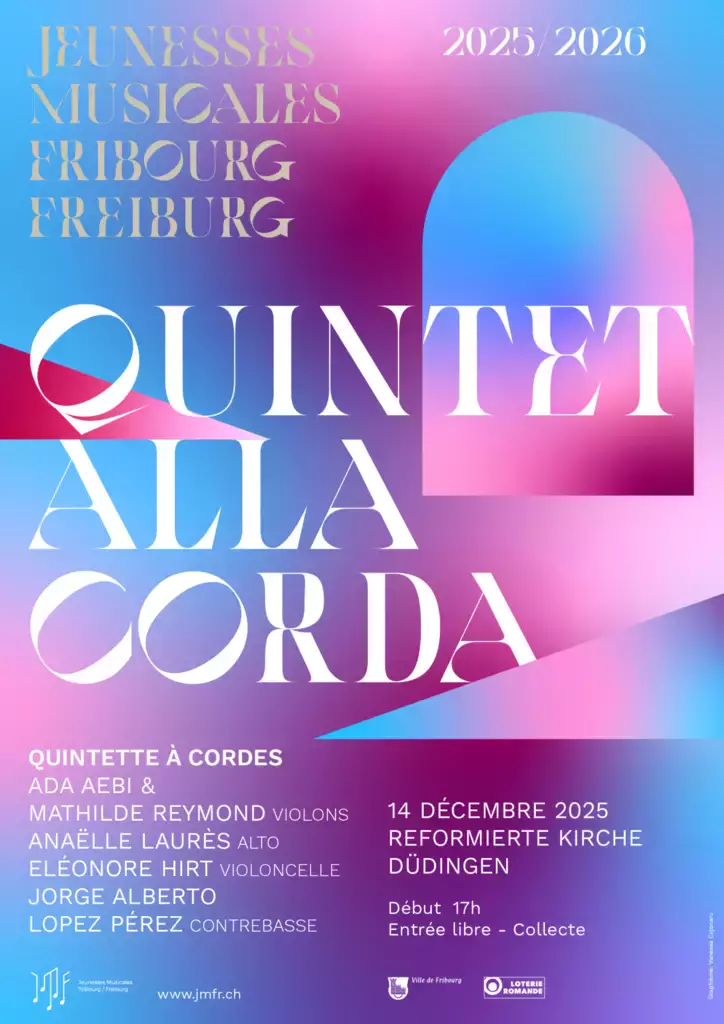 Rejoignez-nous le dimanche 14 décembre 2025 à la Reformierte kirche de Düdingen pour ce moment unique. L'entrée est libre, une collecte sera proposée pour soutenir ces jeunes artistes pleins de promesses.
