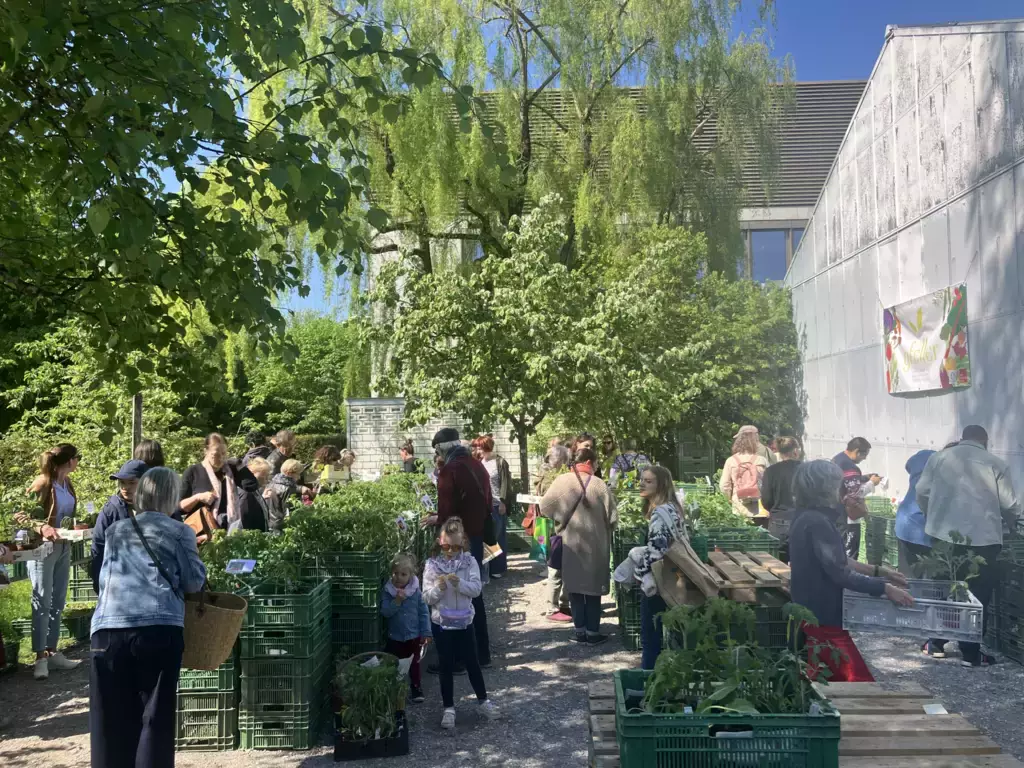 Rund 30 Aussteller bieten Pflanzen, Setzlinge, Samen und weitere pflanzliche Produkte an. «Bistrot du Jardin» mit Bratwurst «Fleisch und Brau AG», Kuchen, Kaffee und Getränken.