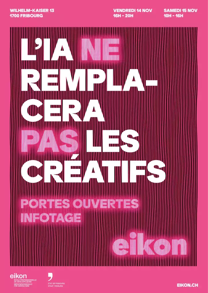 eikon - l'école professionnelle en arts appliqués du canton de Fribourg vous invite à découvrir ses filières de formation à travers d'expositions, de présentations et d'animations. Une immersion dans l'univers de la communication visuelle qui peut susciter des vocations!