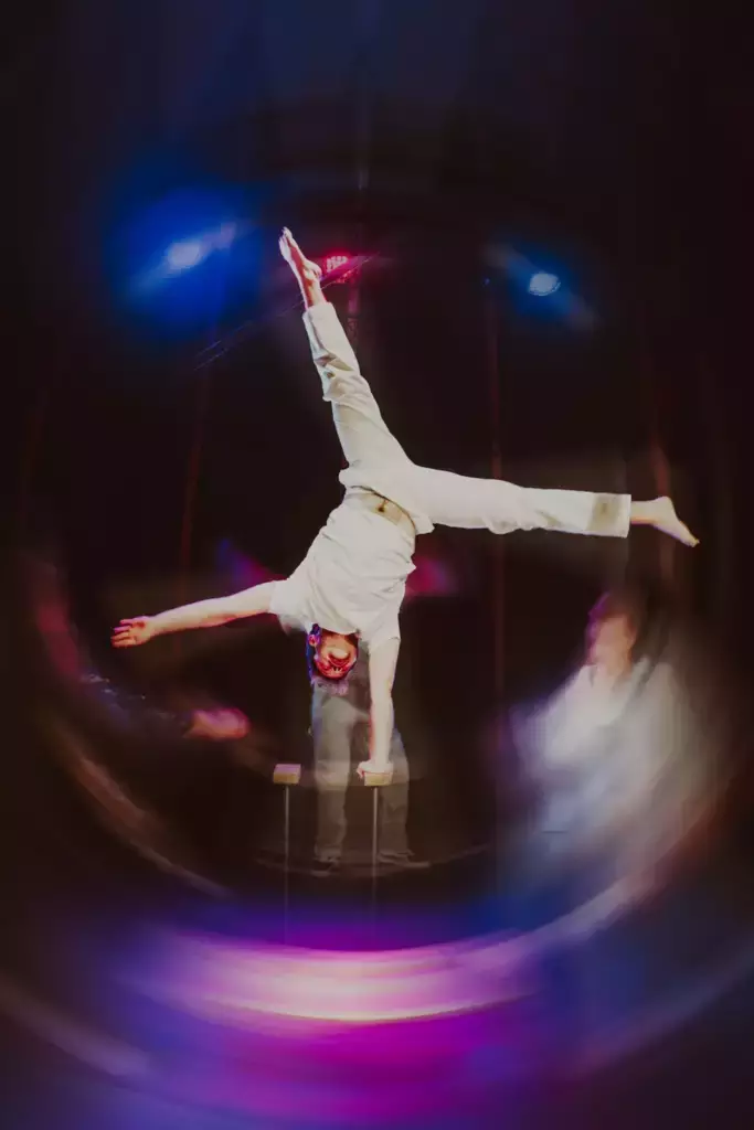 In Kaleidoskop taucht das Publikum in ein sich ständig veränderndes Mosaik ein, in dem sich Fragmente aus Licht, Körpern und Musik immer wieder neu zusammenfügen. Wie in einem unendlichen optischen Spiel offenbart jede Szene eine neue Facette, ein neues Gleichgewicht zwischen Ordnung und Chaos, zwischen Kontrolle und Loslassen.Akrobatik, Balance, Clownerie, chinesischer Mast, Jonglage, Diabolo... All diese Elemente zerstreuen sich wie die Teile eines Kaleidoskops und fügen sich zu neuen Formen zusammen, wodurch ein sich ständig veränderndes Fresko entsteht. Begleitet von bezaubernder Musik lädt die Show zu einem sinnlichen Eintauchen ein, bei dem der Blick des Zuschauers selbst zum Werkzeug der Verwandlung wird.
