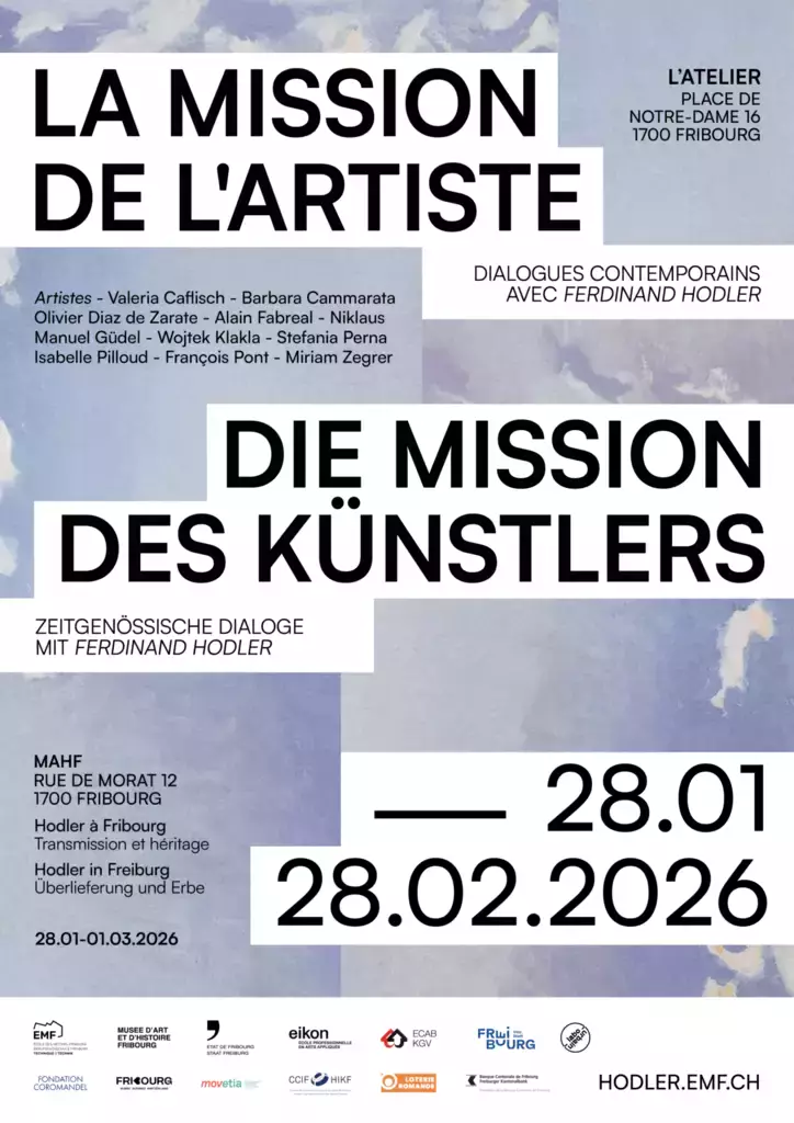 Zur Feier ihres 130-jährigen Bestehens zeigt die Berufsfachschule Freiburg (EMF) die Ausstellung «Die Mission des Künstlers – zeitgenössische Dialoge mit Ferdinand Hodler». Während seiner Lehrtätigkeit an der Berufsfachschule Freiburg (EMF) hielt Ferdinand Hodler am 12. März 1897 einen Vortrag über die Mission des Künstlers. Der grundlegende Text für sein künstlerisches Schaffen hinterfragt die Rolle des Künstlers in der Gesellschaft sowie den Wert der Kunstvermittlung und schlägt eine Brücke zwischen Kunst, Technik und Pädagogik.
