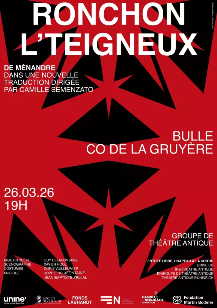 Avec Ronchon l'Teigneux, le GTA signe une relecture malicieuse d'une pièce du IVème siècle av.n.è. : un ronchon grincheux, un amour contrarié, des esclaves rusés et un banquets bien arrosé. Ici le héros est constipé socialement autant qu'au niveau intestinal - et tout le monde va en faire les frais !