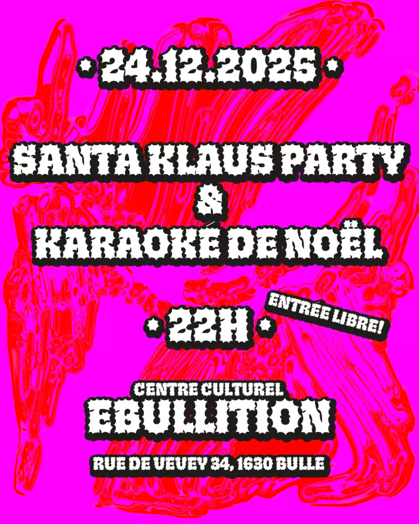 Ebullition est de retour pour secouer ton réveillon de Noël ! Viens dès 22h pour ne rien louper de la traditionnelle Santa Klaus Party, qui va te prouver que le père Noël existe... et qu'il sait chanter !