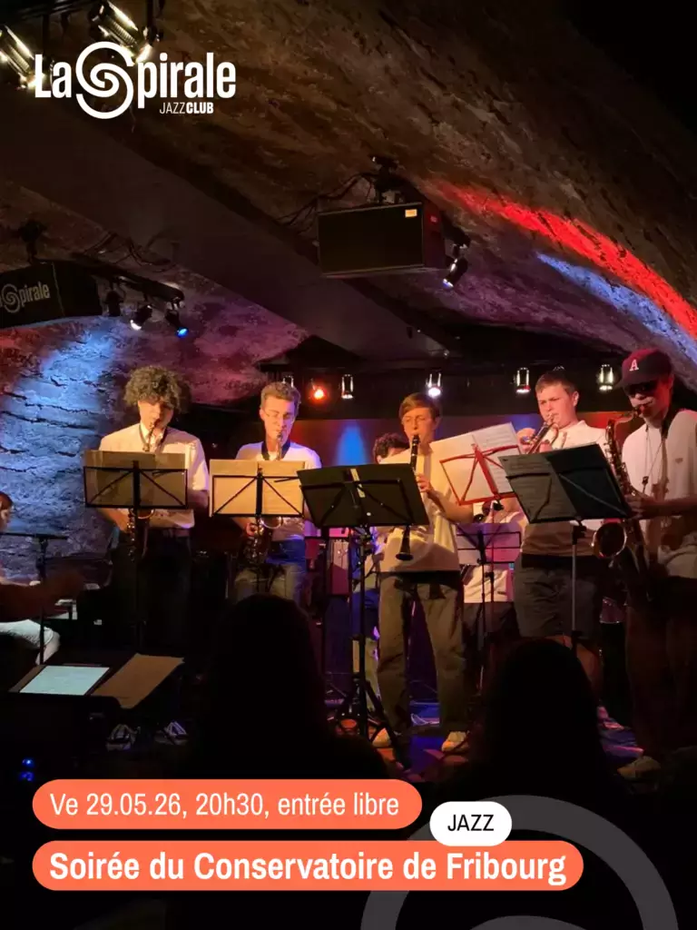 La section Jazz & Modern Music du Conservatoire de Fribourg prend ses quartiers en basse ville pour sa traditionnelle soirée de fin d’année. Le Jazz-13, le Young Jazz Ensemble, les ateliers d’élèves en filière amateur et filière intensive, jeunes talents ou préprofessionnels, se succèderont sur la scène de la Spirale pour une soirée festive et haute en couleur, témoignant de la vitalité du jazz et des musiques actuelles à Fribourg.