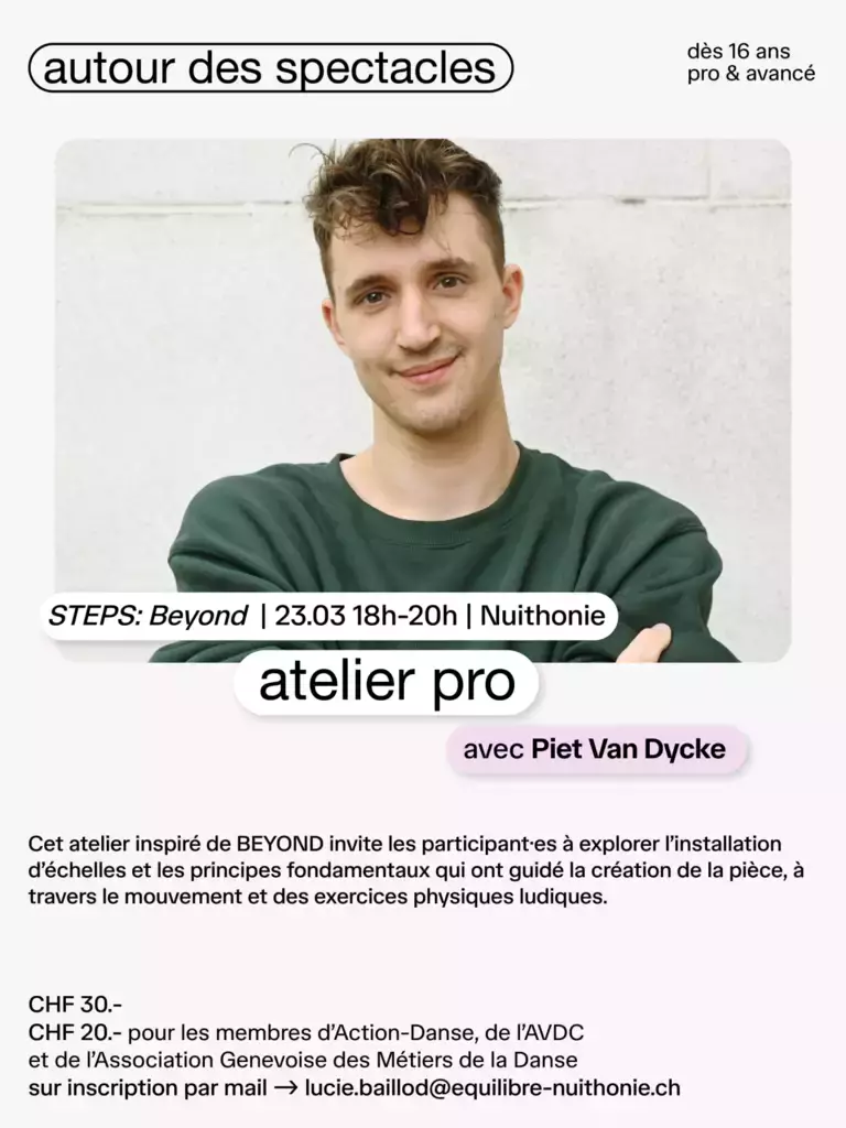 En collaboration avec Action Danse Fribourg, Equilibre Nuithonie propose divers événements autour des spectacles.