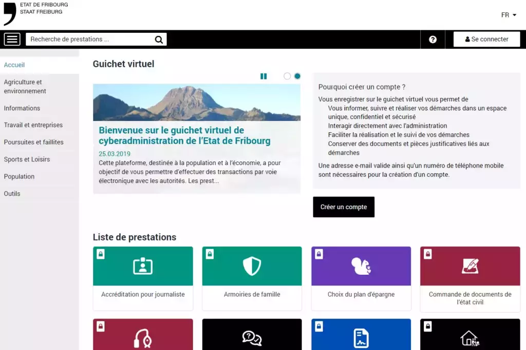 Accès au Guichet virtuel : Guichet virtuel de l'Etat de Fribourg