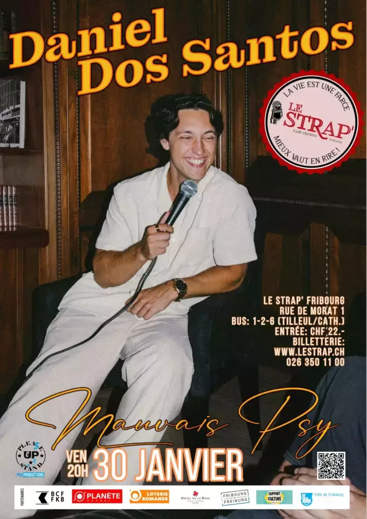 Avec son premier spectacle “Mauvais Psy” il vous garantit de ne résoudre ni vos traumas ni les siens mais d’en rire comme si la vie n’en dépendait pas. Depuis ses débuts il y a quatre ans, il s’impose comme l’un des jeunes talents les plus prometteurs de la scène francophone. Il se vante régulièrement de son prix du plus haut taux d’absentéisme universitaire mais ce n’est pas tout.