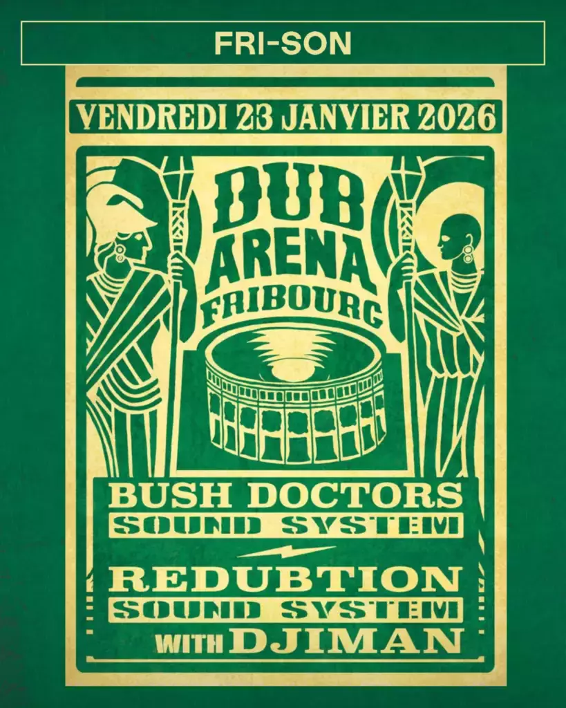 Pour cette nouvelle édition de la Dub Arena, Redubtion sound system partagera la dance avec Bush Doctors sound system qui font le déplacement depuis la ville de Genève. Ce sera la première fois que les deux crews se rencontrent avec leurs sounds pour une session de 5H dans la grande salle de Fri-Son. Un événement à ne pas manquer !