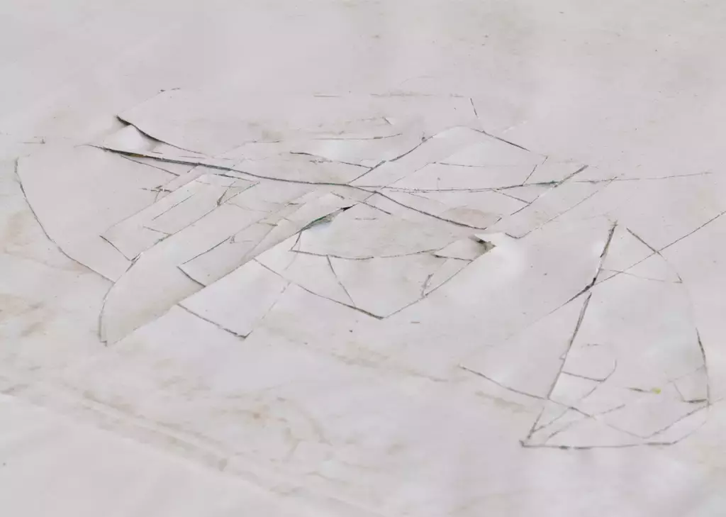 La pratique d’Olga Balema explore la sculpture comme une forme ouverte à la reconfiguration et aux processus. The bizarre space of complex numbers est consacrée aux œuvres au sol récentes de Balema et constitue la première exposition solo de l’artiste en Suisse. Elle propose le sol comme un champ ouvert dans lequel les relations et les configurations s’établissent à l’horizontale, comme une sorte de plan anti-monumental, impliquant des processus de frottage, d’éraflage, de découpe, de couture, de pliage, d’assemblage, de liaison et de libération. Le travail de Balema place la forme et la création de formes entre l’intentionnalité et le hasard et implique une réélaboration continue des éléments existants.