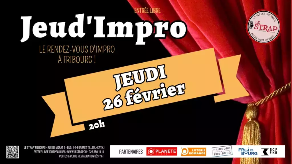 Chaque dernier jeudi du mois en ville de Fribourg, le rdv improvisation au Strapontin Comedy Club !