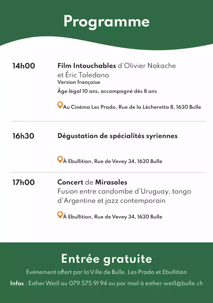Nous vous invitons une nouvelle fois pour une journée de partage autour d’un film, d’un concert, et d’une collation!