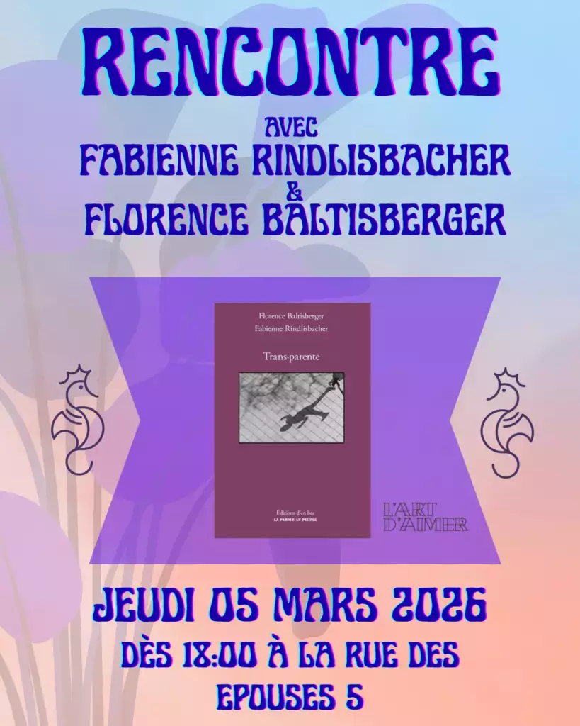 Dans le cadre de notre cycle L’Art d’aimer les rencontres, nous avons le plaisir d’accueillir Fabienne Rindlisbacher et Florence Baltisberger à la librairie.