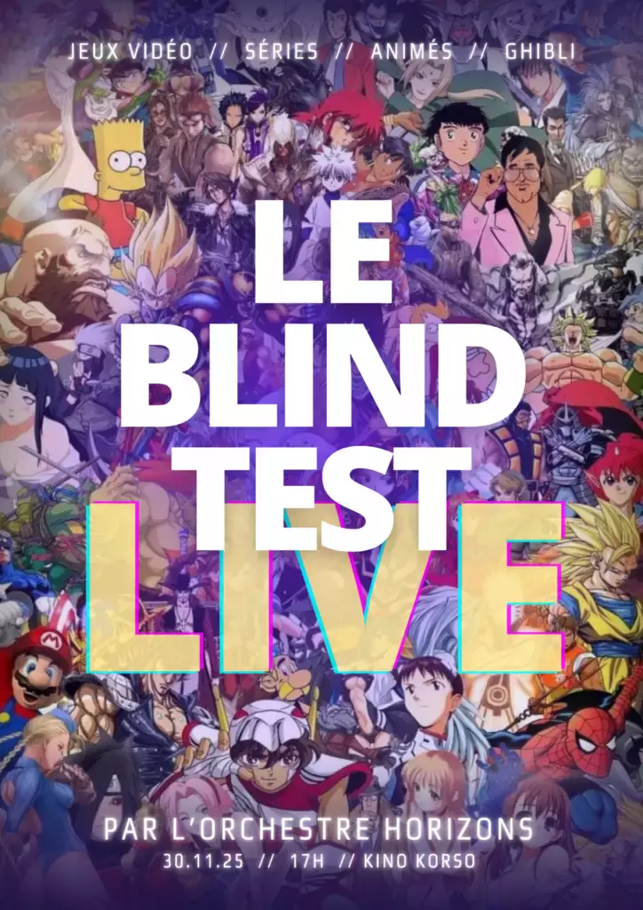 Les musicien·nes d’Horizons vous livrent en direct les plus grands thèmes de jeux vidéo, séries, animés et Ghibli dans un Blind Test pas comme les autres.