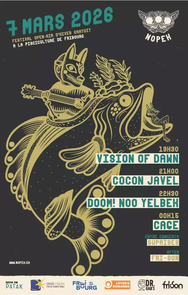 Après douze éditions, le Nopek Festival reprend ses quartiers à la place de la Pisciculture de Fribourg pour un événement hors du temps. Devenu maintenant un rendez-vous culturel incontournable de la ville de Fribourg, la prochaine édition aura lieu le samedi 07 mars 2026. Chaque année, le festival met à l’honneur des artistes émergent-es de la région, dont la notoriété dépasse souvent les frontières cantonales. Cette programmation éclectique promet de vous faire danser en plein hiver dans le cadre atypique de la place de la pisciculture, entourée de ses falaises et de ses bâtisses industrielles.