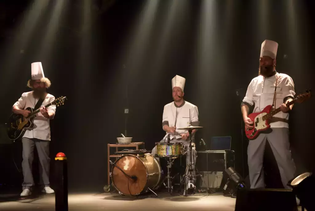 Dans une parfaite émulsion entre théâtre et chanson, autour des thèmes de la cuisine et de la nourriture, nos trois truculents barbus, transformés en chefs pour l’occasion, se chargeront de faire monter la mayonnaise et partager leur goût pour les mots et les épices. À table !
