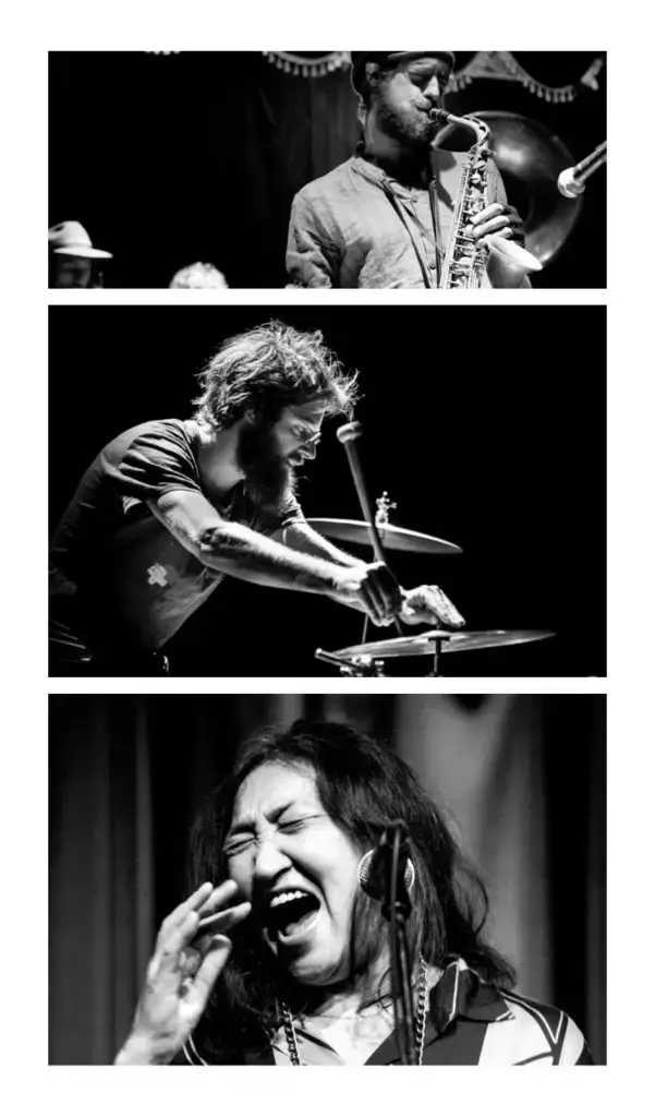 Saadet Türköz zaubert mit Stimme, wissend wie Echo aus Welten, die sich stetig verändern und grenzenlos verbinden. Lino Blöchlinger bläst stürmische Sax-Flöten-Tänze entlang der Linie zwischen Komposition und Chaos. Julian Sartorius verewigt den Takt einer unsichtbaren Uhr ins flüchtige Jetzt. Gemeinsam entwirren sie den Faden der Klangzeit, entfalten einen Teppich aus Rhythmus, Noise und Poesie, bis alles dringlich schwingt oder sanft zersplittert. Dazu noch elektronisches Abtasten der stilistischen und emotionalen Spalten von Fels aus Freiburg.