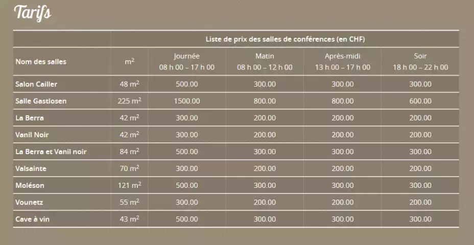 Une convention rappelant les conditions ci-dessous vous sera transmise, vous devrez la retourner à l’hôtel datée et signée soit par courrier (Hôtel Cailler 1637 Charmey) soit far fax au +41269276263, afin que la confirmation de votre séminaire soit prise en compte.